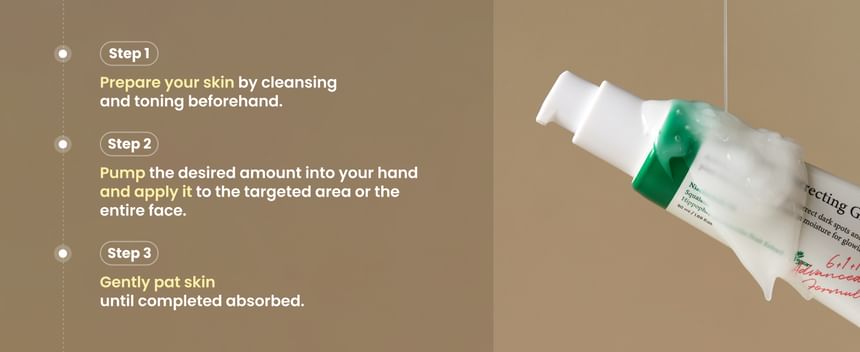 1. Dark Spot Correcting Glow Serum - Apply this product after cleansing and toning. Focus on concerned areas. 2. Complete No-Stress Physical Sunscreen (V3) OTC Version - At the last step of skin care routine, evenly spread moderate amount over face and neck. |