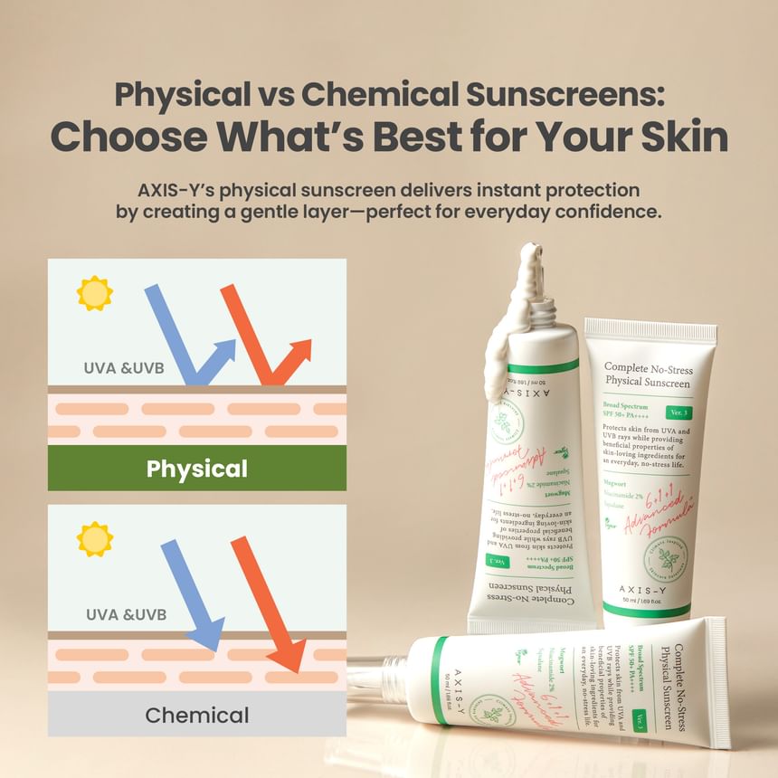 This AXIS-Y Dark Spot Correcting Glow Serum + Complete No-Stress Physical Sunscreen (V3) OTC Version Bundle Set consists of: