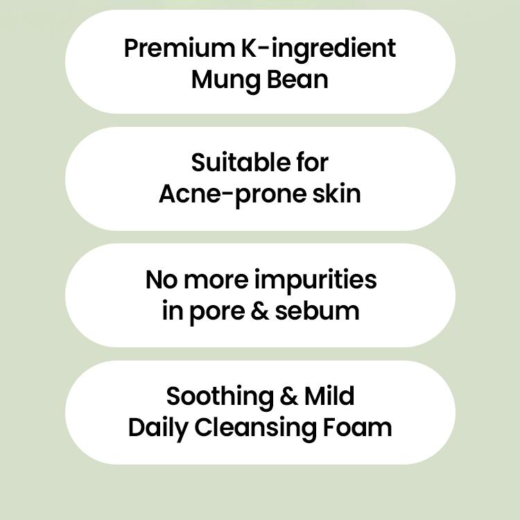 The pH balanced mungbean foam provides non-skin tightening and smooth skin texture after cleansing.